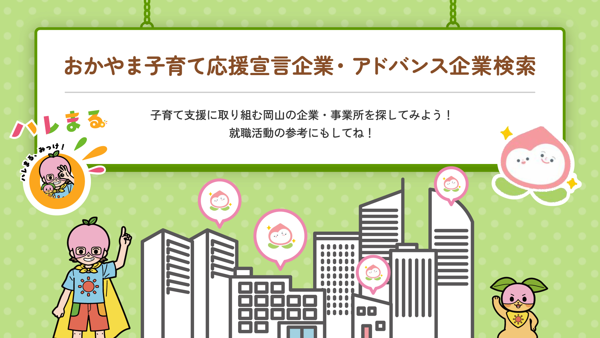 従業員の子育てや、地域における子育てを応援する「おかやま子育て応援宣言企業・アドバンス企業」について、より多くの方に取組内容等を知っていただくため、企業版子育て支援ポータルサイト「ハレまる。」の機能を追加しました!